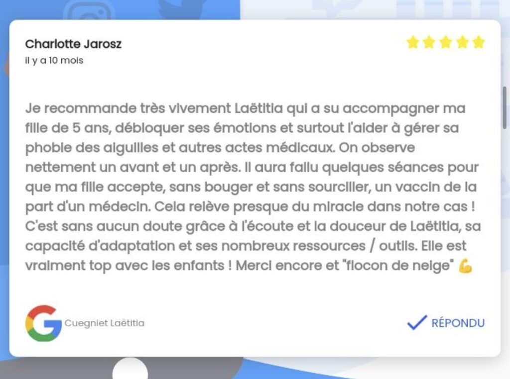 Je propose des séances avec ou sans hypnose avec parfois différents supports comme le dessin solutionniste, des cartes, des jeux, des peluches, etc.